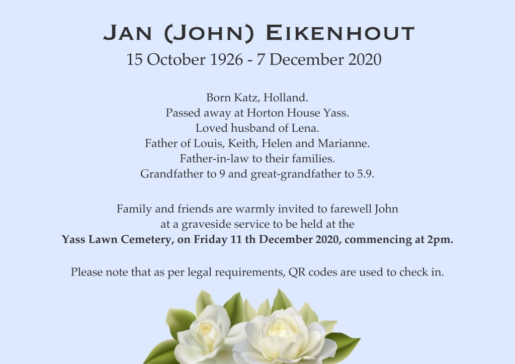 Passed away at Horton House Yass.