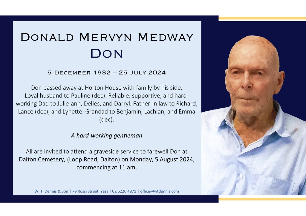 Dalton Cemetery (Loop Road, Dalton) on Monday, 5 August 2024, commencing at 11 a.m.