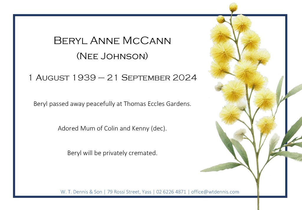 Beryl passed away peacefully at Thomas Eccles Gardens.