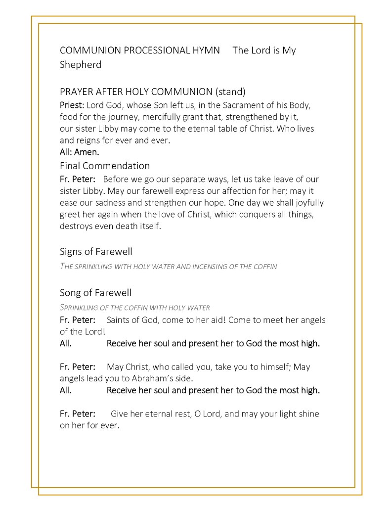 All are welcome to celebrate Libby’s life at