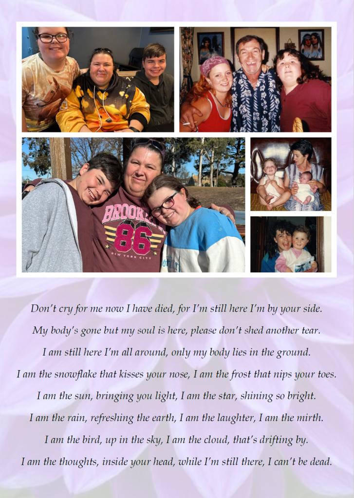 Beloved Daughter, Sister, Aunty, Mother and Friend.