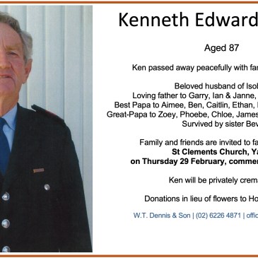 Ken Burden. Passed peacefully with family by his side. Survived by wife, Isobel, children and grandchildren. Click for more details. … More In loving memory of Ken Burden
